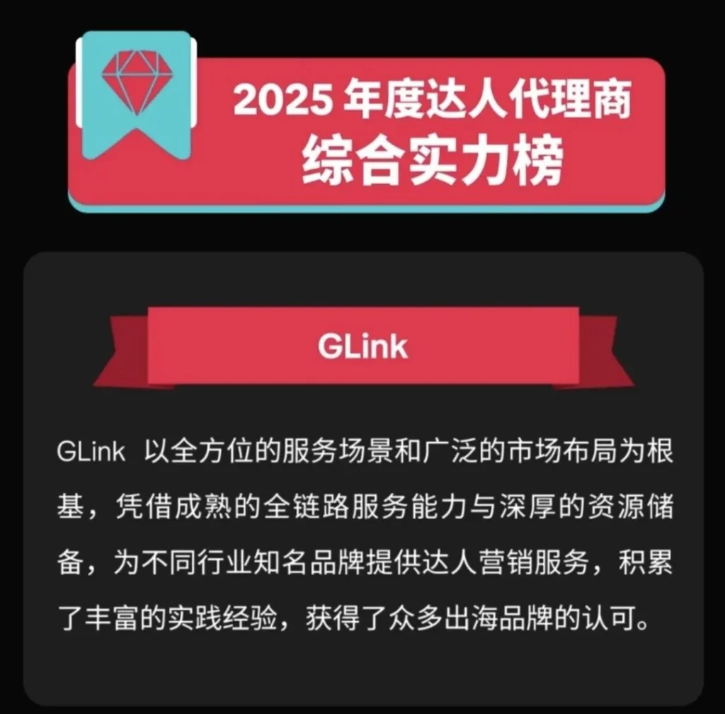 GLink上榜“2025 年度达人代理商综合实力榜”